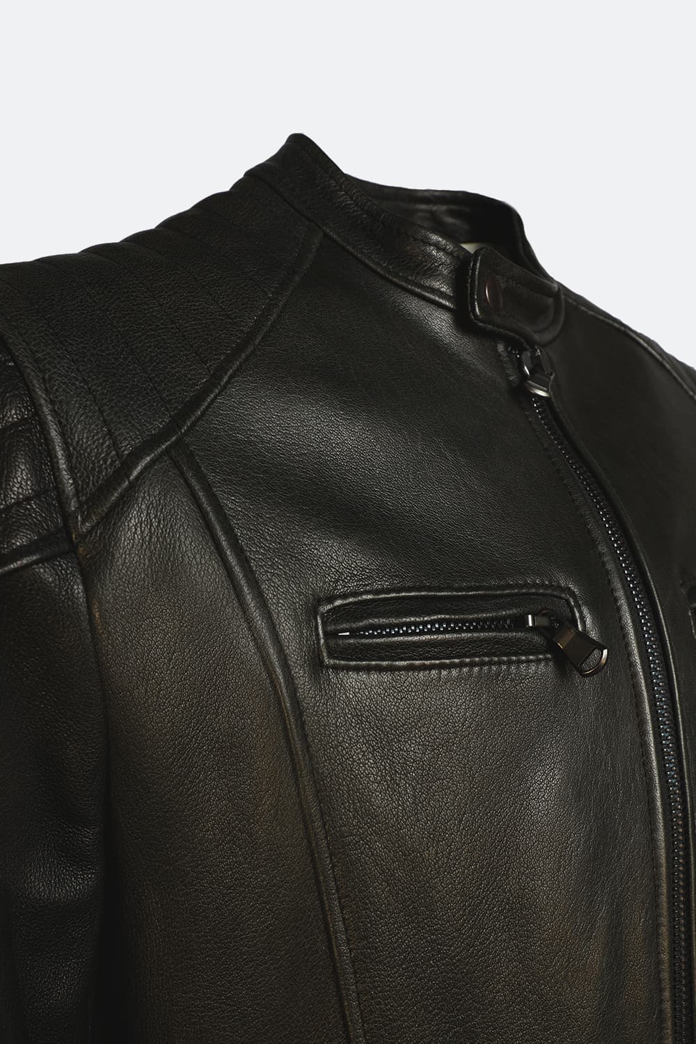 Hybrid nature and highlighted details. Elton Gold Barone masks the biker style behind the sweet and regular lines of a classic jacket. Perfect for those who love a simple jacket but with a determined character. Men's jacket in real lambskin 100% Made in Italy.
